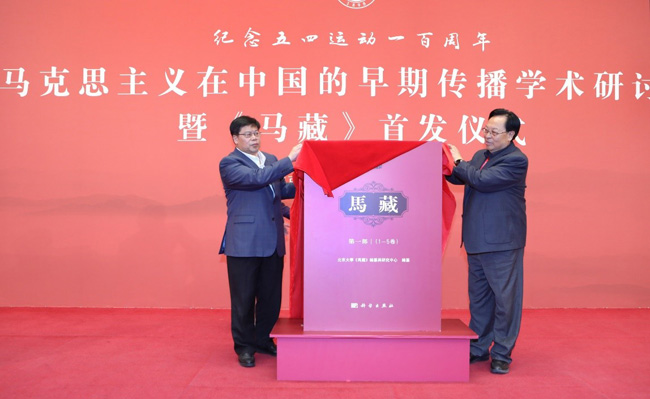 2019年5月4日下午,“纪念五四运动一百周年”马克思主义在中国的早期传播学术研讨会暨《马藏》首发仪式在北京大学举行。活动发布了由北京大学马克思主义学院组织编纂,科学出版社出版,系统呈现马克思主义在中国传播、接受和发展的历史文献典籍——《马藏》的第1部第1卷至第5卷。目前,《马藏》已列为“十三五”国家重点图书出版规划项目,并获得国家出版基金项目的支持。