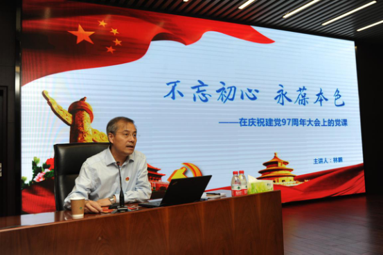 党委书记林鹏为全社党员讲党课