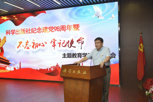 在改革开放和社会主义现代化建设近40年后,我们进入了中国特色社会主义新时代。我们仍然要牢记共产主义远大理想,坚定中国特色社会主义共同理想,全体党员要继承我社“三高三严”的优良传统和服务国家科技战略的初心、继承打造科学出版社“百年老店”的志向,与党的初心同频共振,同向奋进。