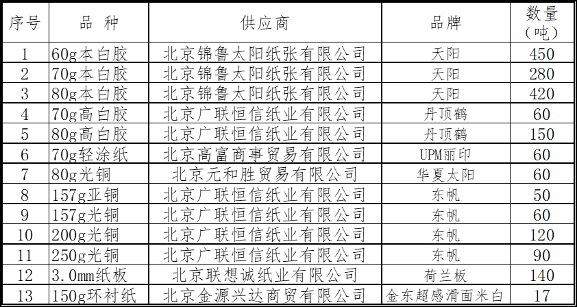 中国科技出版传媒股份有限公司纸张评标小组根据《2024年纸张招标办法》和《2024年纸张招标方案》的要求,综合考虑投标纸样质量和报价,确定2024年纸张采购中标供应商6家,现将结果公示。