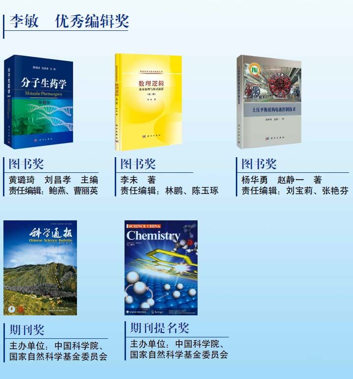 《科学通报》获得期刊奖,《中国科学:化学(英文版)》获得期刊提名奖。