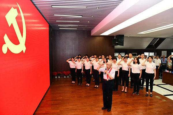 会议举行了新党员入党宣誓仪式,“光荣在党50年”纪念章获得者原总编辑谈德颜同志领誓,23名新党员面对党旗庄严宣誓,全体党员与新党员一起重温了入党誓词。