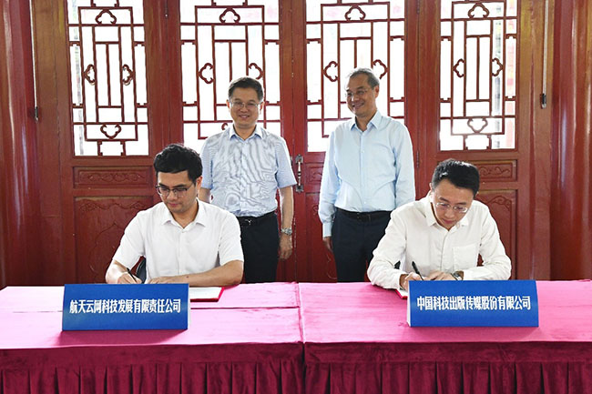 2021年7月15日,中国科技出版传媒股份有限公司(以下简称“科学出版社”)与航天云网科技发展有限责任公司(以下简称“航天云网”)战略合作签约仪式在北京举行。科学出版社党委书记、董事长林鹏、总编辑李锋、董事会秘书张凡、职教中心副总编上官子健和航天云网董事长於亮、副总经理汤滔、国际部部长陈硕、航天紫光总助陈贺出席仪式,上官子健、汤滔代表双方签署了战略合作协议。