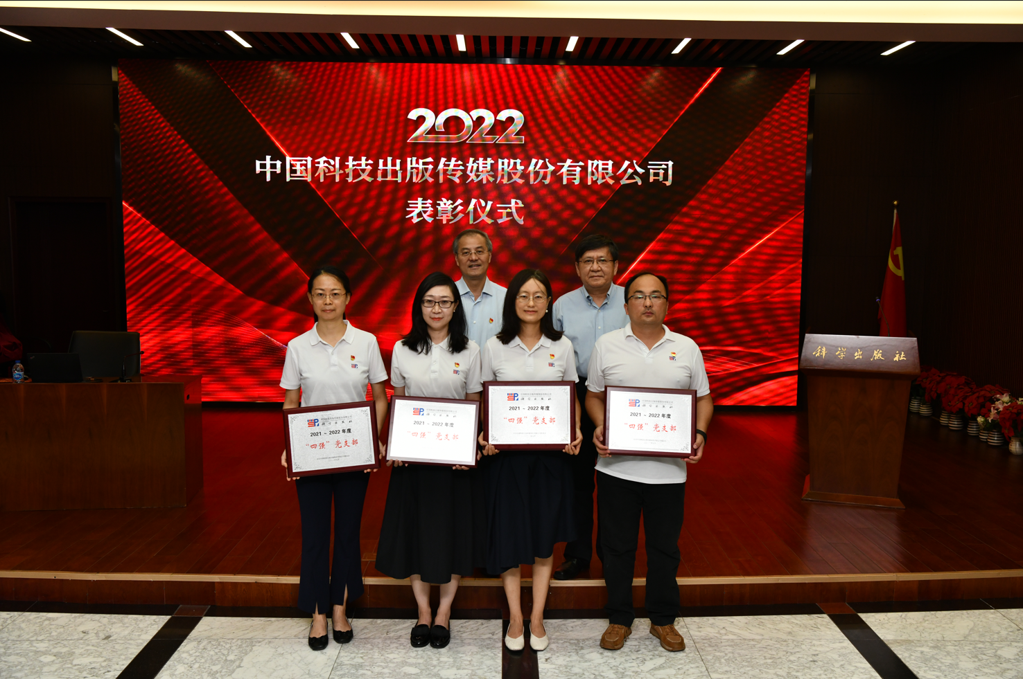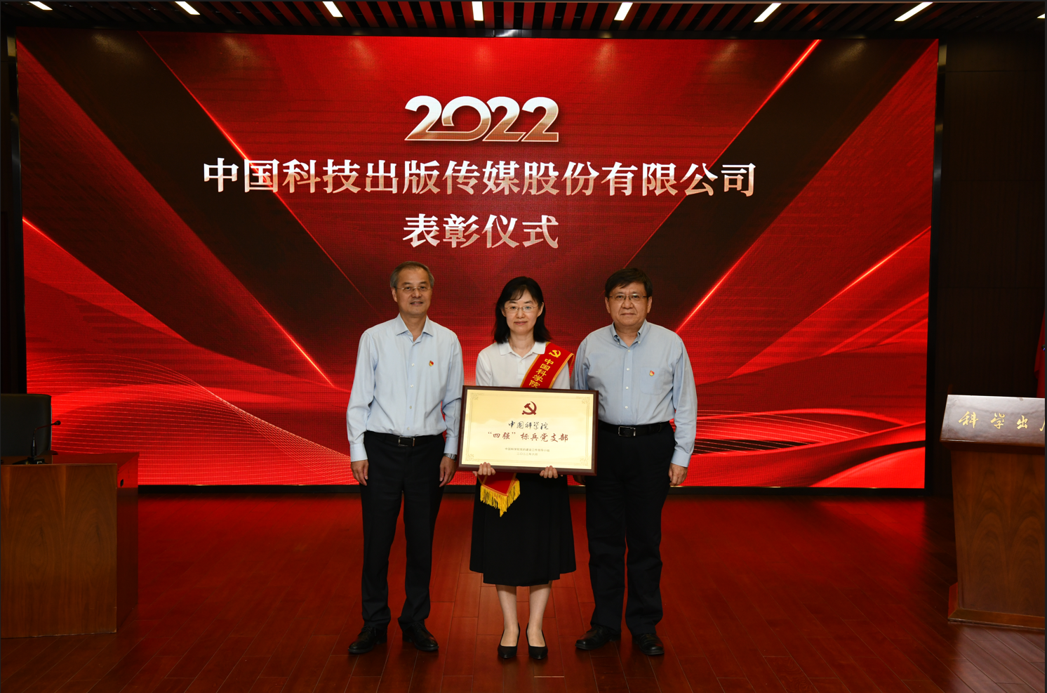 会议首先进行了表彰,分别向获得2021~2022年度“四强”党支部的《中国科学》党支部、教材图书党支部、石家庄党总支工科综合党支部、总编校对党支部、销售财务党支部,获得中央和国家机关“四强”党支部的《中国科学》党支部、教材图书党支部,获得中科院“四强”标兵党支部的《中国科学》党支部颁发奖牌和证书。《中国科学》党支部、教材图书党支部作先进事迹交流。