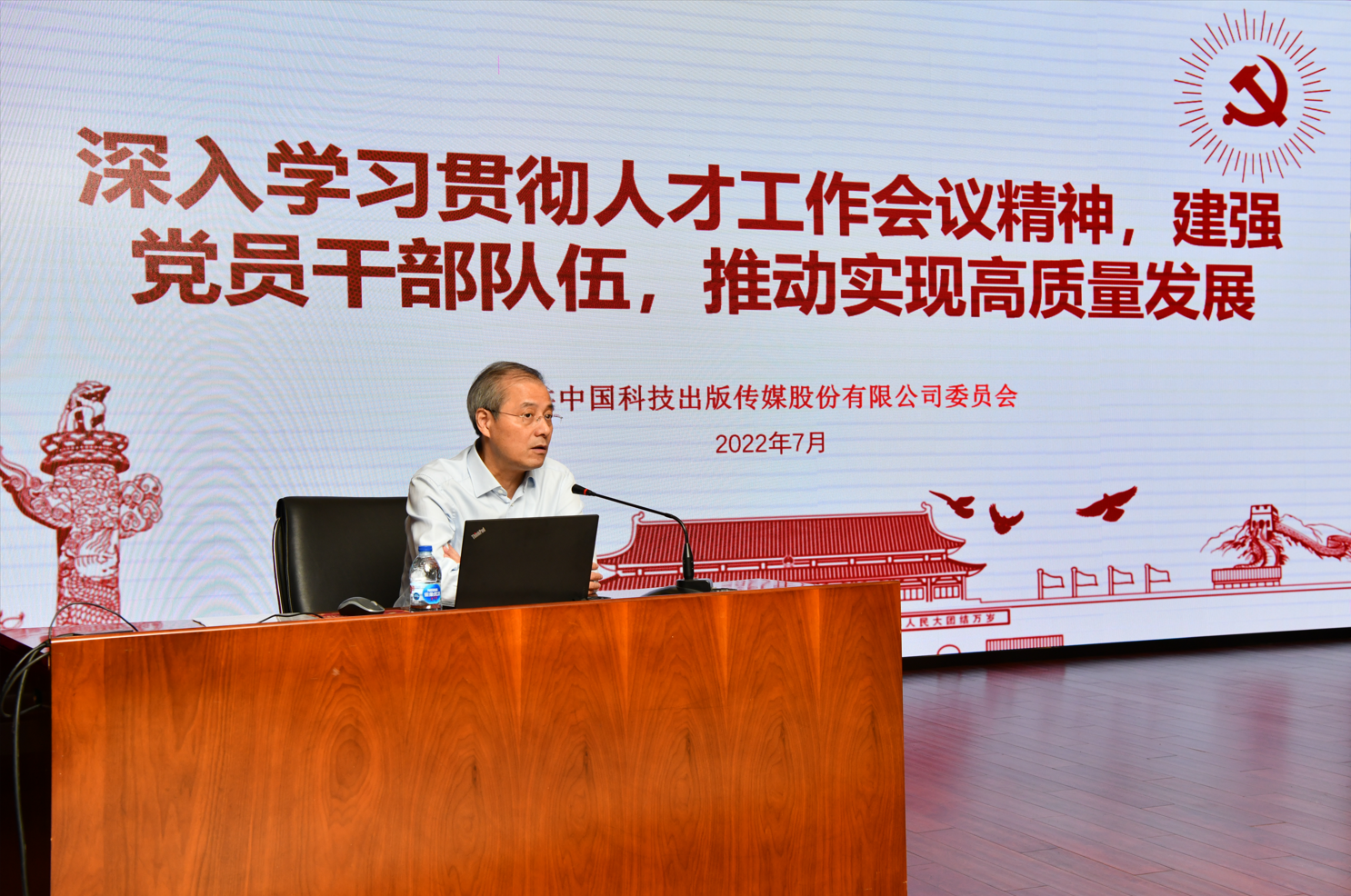 7月20日,中国科技出版传媒股份有限公司党委召开庆祝建党101周年表彰交流大会暨专题党课报告会。党委委员、班子成员、中层干部、各党支部书记等70余人现场参会,500余党员以视频形式参加会议。