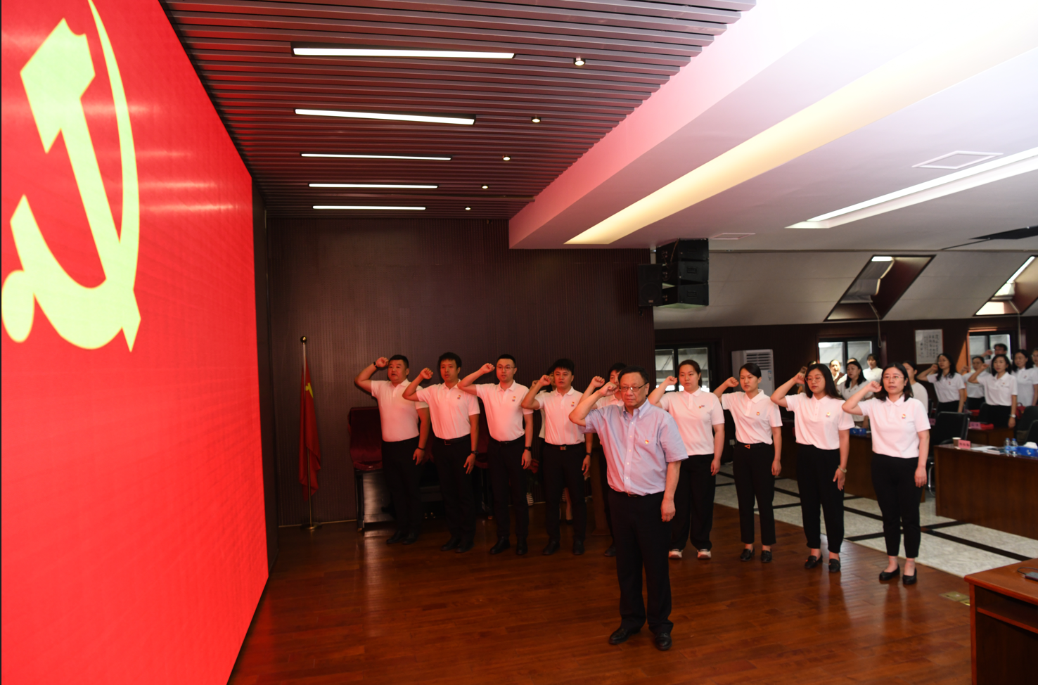 会议举行了新党员入党宣誓仪式,党委书记胡华强领誓,9名新党员面对党旗庄严宣誓,全体党员与新党员一起重温了入党誓词。